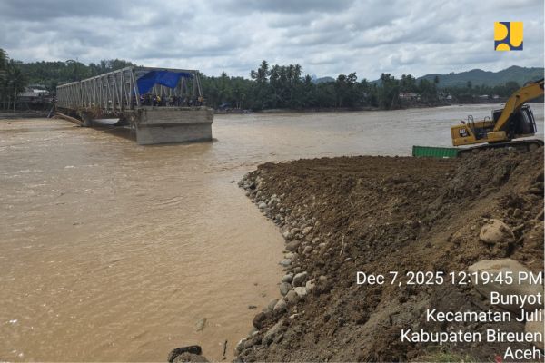 ACEBanten.com – Kementerian Pekerjaan Umum (PU) telah melakukan penanganan jalur Bireuen, Provinsi Aceh pasca bencana banjir dan tanah longsor dengan pengerahan personel serta peralatan berat untuk membuka keterisolasian wilayah. Penanganan difokuskan pada sejumlah titik kritis, termasuk jembatan penghubung yang putus akibat terjangan banjir dengan pemasangan jembatan bailey sebagai akses sementara.
