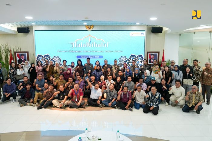 ACEBanten.com – Masih dalam suasana Hari Raya Idul Fitri Tahun 1446H/2025 M, Menteri Pekerjaan Umum Dody Hanggodo didampingi Wakil Menteri PU Diana Kusumastuti dan para Pejabat Tinggi Madya di lingkungan Kementerian PU berkesempatan melakukan Silaturahmi sekaligus Halal Bihalal bersama dengan para Wartawan Media Massa di Pendopo Kementerian PU, Jumat (11/4/2025).