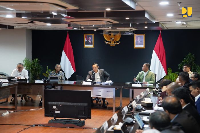 Dalam rapat koordinasi tersebut sejumlah pejabat tinggi Kementerian PU tampak hadir diantaranya Direktur Jenderal Sumber Daya Air Lilik Retno Cahyadiningsih, Direktur Jenderal Pembiayaan Infrastruktur Pekerjaan Umum Rachman Arief Dienaputra, Kepala Badan Pengembangan Infrastruktur Wilayah (BPIW) Bob Arthur Lombogia, Staf Khusus Menteri Bidang Sumber Daya Air dan Kerja Sama Internasional Arie Setiadi Moerwanto, serta Staf Khusus Menteri Bidang Teknologi dan Kepatuhan Intern Syamsul Bachri Yusuf. (Rls)